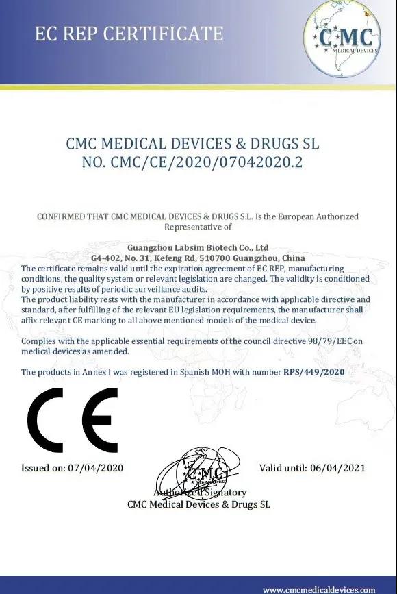 藍勃菌物干試熒光天然免(mian)疫定量檢(jian)測儀AFS-1000獲歐洲聯(lian)盟CE監管(guan)和醫療(liao)管(guan)理手術(shu)器械廠品用于出口營銷說明。