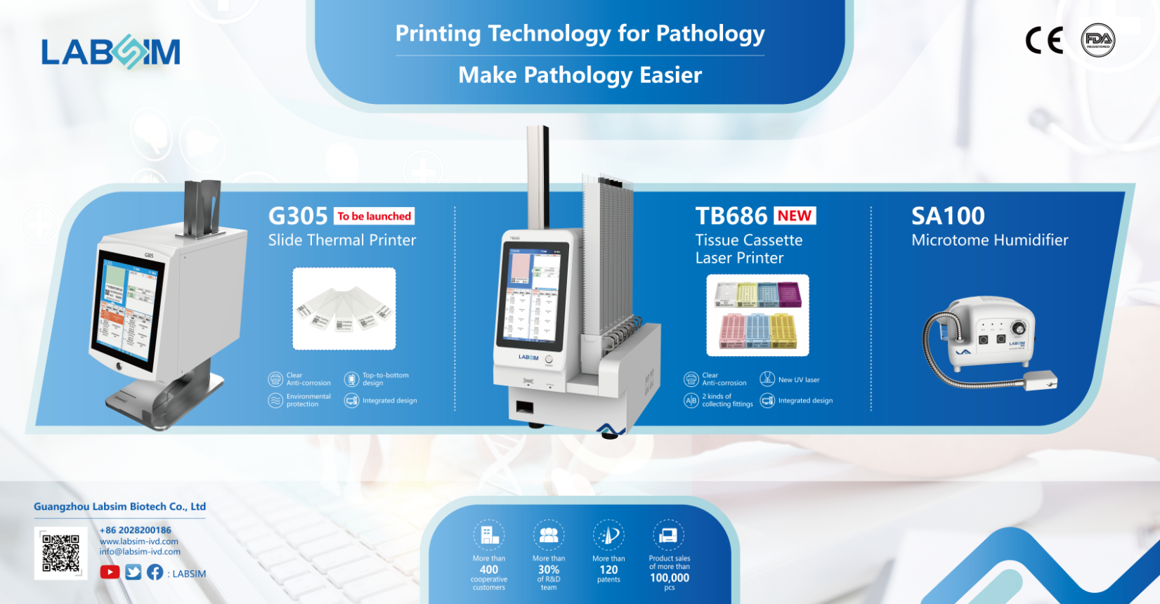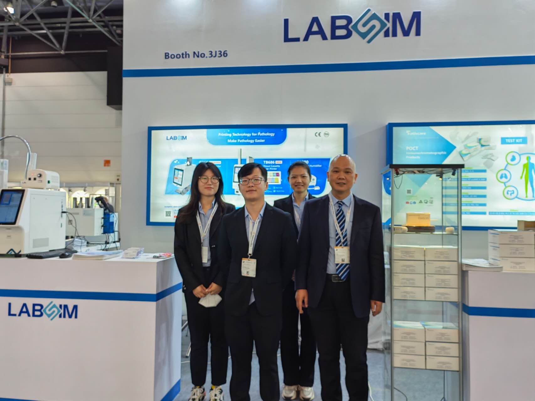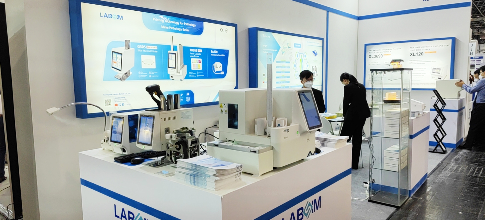 藍勃閃耀全場,展位上熒光免疫分析儀、組織盒紫外激光書寫儀、載玻片書寫儀、切片霧化器等專業設備倍受客戶青睞,其中最為大家所熟知的AFS-1000干式熒光免疫分析儀、TB586UV組織盒紫外激光書寫儀、TB686組織盒激光書寫儀、G363UV載玻片紫外激光書寫儀等更是成為當中的耀眼明星,充分為全球展現了中國醫療檢測設備品牌的硬實力,完美詮釋民族品牌的魅力。